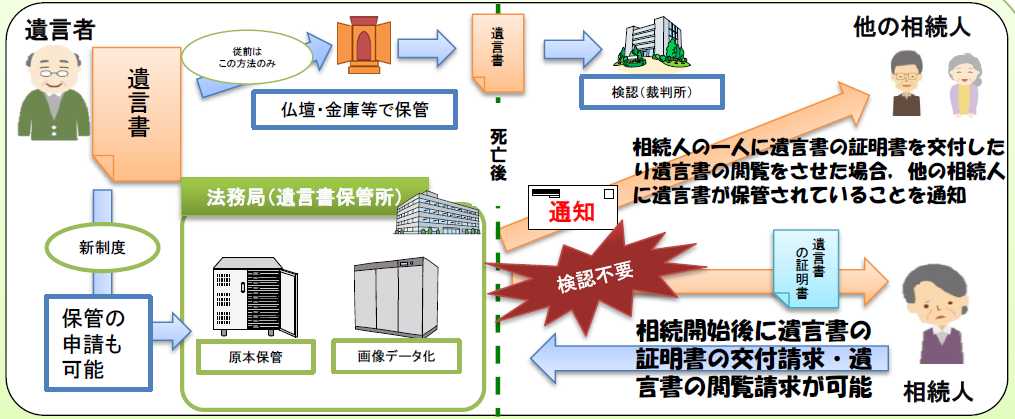 ② 死亡後に、遺言書を保管していることを相続人等に法務局から通知してもらえます。