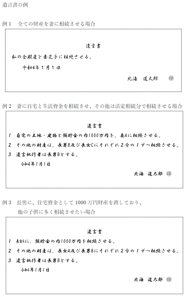 例3 ある子供には財産をこれまで渡しているので、他の子供に多く遺すようにしたい